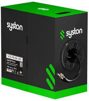 Syston Cable Technology Cat 6A+ Ethernet Network Cable, 750MHz 23AWG Solid Bare Copper Wire Outdoor/Indoor, No Ends 100/250/500/1000 Ft Available, Heat Resistant Riser Rated (500 FT, CMR, Black-CMR)