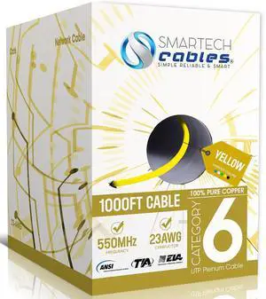NewYork Cables | CAT6 Ethernet Cable 1000ft | Bulk Riser (CMR) 23AWG, UTP 4 Pairs, 550MHz 10Gbps High-Speed LAN Cable for Streaming, Gaming, Home, Office | Easy Pull Box | Yellow
