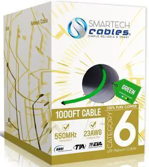 Cmple - Cat6 Plenum Ethernet Cable 1000ft 550MHz CMP 23AWG 10 Gigabit Solid Network DSX-8000 Certified Unshielded Twisted Pair UTP Bulk Cat 6 Green