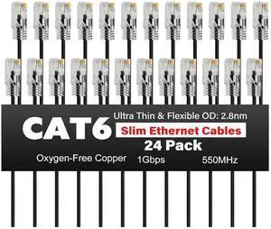 Slim CAT6 Ethernet Cable 3 FT (24-Pack), Cat 6 Patch Cable, 1Gbps, Internet Network Cables, Ultra Slim Cat6 Cat5e Cables, UTP, for Router, Modem, Switch, Gaming Consoles, TV, Server, Computer Room