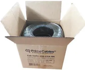 PrimeCables 250ft Bulk Cat6 Cable, Solid CCA Ethernet Cable UTP 23AWG, Waterproof Shielding, Cat6 Network Cable Suitable for Fast, Gigabit and 10-Gigabit Ethernet - Blcak