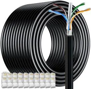 Cat 6 Outdoor Ethernet Cable Bulk 328 ft (20RJ45), FTP Cat 6 Shielded Cable 23AWG, Heavy Duty, Direct Burial, Waterproof, In-Ground, UV Resistant Cat 6 Internet Network Cable for Router Gaming, CCA