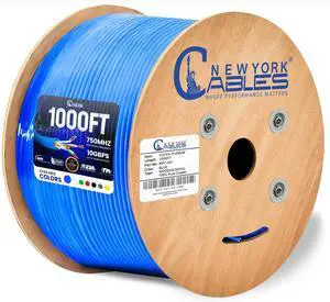 Newyork Cables | Cat6A Plenum (CMP) Cable 1000ft, 750MHz, PoE++ (4PPoE) | 100% Solid Bare Copper, Most Certified Plenum Rated Fire Resistant 10GB High Speed Ethernet Cable | 23AWG (UTP) 4 Pair (Blue)
