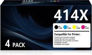 414X Toner Cartridge 4 Pack Color LaserJet pro MFP M479fdw Compatible for HP 414X 414A W2020X High Yield Toner for Color Laser Jet Pro MFP M479fdw M479dw M454dn M454dw M479fdn M454 M479 Printer