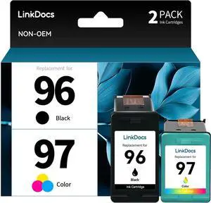 LinkDocs 96 97 Ink Cartridge Remanufactured Replacement for HP 96 97 Work with Officejet 7310 7210 Deskjet 9800 PhotoSmart 8050 Printer (2 Pack Black & Tri-Color)