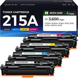 215A Toner Cartridge with Chip, Replacement for HP 215A W2310A Toner Cartridge, Compatible with Color Laserjet Pro M155a, M155nw, MFP M182n, M182nw, M183fw Printer (4-Pack Black Cyan Magenta Yellow)