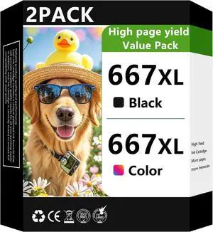 667XL Ink Cartridge Black and Color Combo Pack Compatible for HP Ink 667 667XL Printer Ink Work with DeskJet 1275 2374 2375 2376 2775 2776 6075 6475 6476 Printers (2Pack)