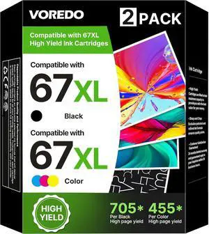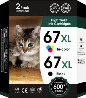 67XL Ink Cartridges Black/Color Combo Pack Compatible for HP Ink 67 67XL Work for DeskJet 2700 2700e 2755 2755e 2855e 4100 4155e 4133e 4255e Envy 6000 6455e 6020e 6400 6475e 6075 6055e Printer 2 Pack
