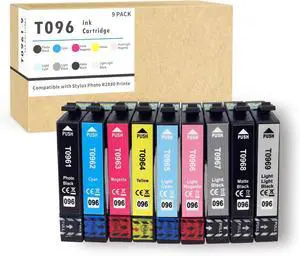 096 T096 Ink Cartridges 9-Color Set Remanufactured T096 T0961 T0962 T0963 T0964 T0965 T0966 T0967 T0968 T0969 Replacement for 96 UltraChrome K3 Ink Cartridge for Stylus Photo R2880 Printer