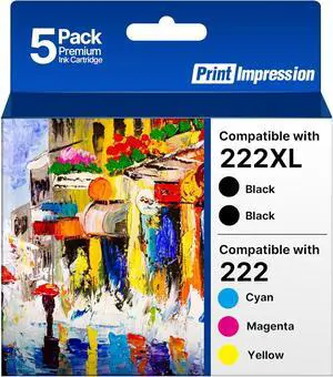 222XL High-Capacity Black & Standard Color Remanufactured for Epson 222XL Ink Cartridges Combo Pack 222 Ink Work for Workforce WF-2960 Expression XP-5200 Printer (Black Cyan Magenta Yellow, 5 Pack)