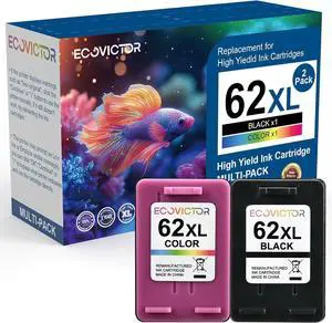 62XL Ink Cartridges Black and Color Remanufactured Replacement for HP Ink 62 HP62XL Combo Pack Compatible Envy 5540 5640 5660 5665 7640 7645 OfficeJet 5740 5741 8040 200 250 Mobile Printer