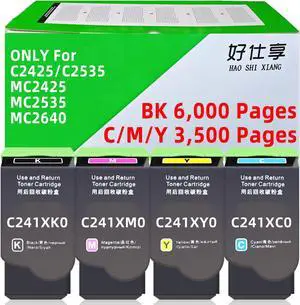 C241XK0 C241XC0 C241XM0 C241XY0 C251UK0 Color Toner Cartridge Compatible with Lexmark ONLY for C2425 C2535 MC2425 MC2535 MC2640 C2425dw C2535dw MC2425dw MC2535adwe Printer (CMYK-4Pack Set)