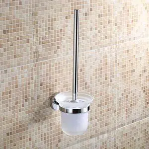 Durable Stainless Steel Toilet Brush Set Wall Mounted Toilet Cleaning Brush Holders With Glass Cup Holder Bathroom Toilet Brush