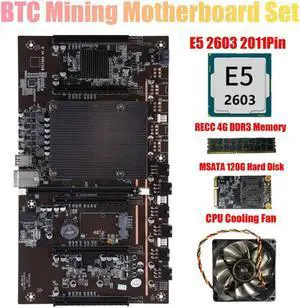 X79 H61 BTC Mining Motherboard with E5 2603 CPU RECC 4GB DDR3 Memory 120G SSD+Fan 5X PCI-E Support 3060 3070 3080 GPU