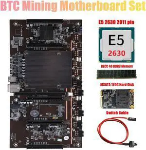 H61 X79 BTC Mining Motherboard with E5 2630 CPU+RECC 4G DDR3 Ram+120G SSD+Switch Cable Support 3060 3070 3080 GPU