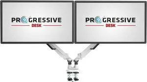 Progressive Desk Dual Monitor Arm - Gas Spring - Fits 17"-32" Monitors - 360° Rotation - Arm Holds Up to 40 lbs - VESA and Grommet Mount