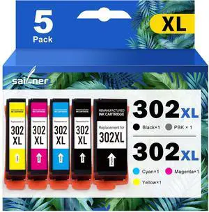 SAILNER Remanufactured Ink Cartridge Replacement for Epson 302XL Ink Combo Pack 302 XL T302XL use with Expression Premium XP6100 XP-6100 XP6000 Printer 5 Pack 302XL