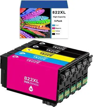 822XL Ink Cartridges Replacement for Epson 822XL Ink Cartridges 822 XL for Epson WF-3820 Printer Ink Cartridges WF-4820 WF-4830 WF-4833 WF-3823 Printer 5 Pack(822XL 2Black Cyan Magenta Yellow)