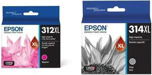 Epson T312XL320 Claria Photo HD Magenta High Capacity Cartridge Ink & T314XL Claria Photo HD Ink - Gray (T314XL Gray)
