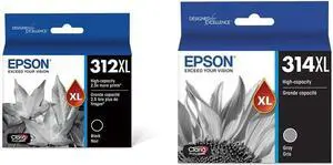 Epson T312XL120 Claria Photo HD Black High Capacity Cartridge Ink & T314XL Claria Photo HD Ink - Gray (T314XL Gray)