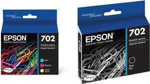 Epson 702 DURABrite Ultra Standard Capacity Cartridge Ink, Colour Combo Pack (T702520) & 702 DURABrite Ultra Standard Capacity Ink Cartridge, Black (T702120)