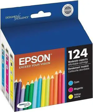 Epson 124 Cyan, Magenta & Yellow Ink Cartridges, Moderate Capacity, 3 Pack (T124520-S)