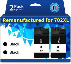 TEINO Remanufactured Ink Cartridge Replacement for Epson 702 702XL T702 T702XL use with Epson Workforce Pro WF-3720 WF-3730 WF-3733 (Black, 2-Pack)