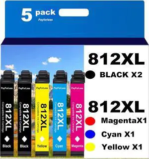 812XL Remanufactured for Epson 812XL Ink cartridges Combo Pack for Epson 812 T812 XL for Epson Workforce Pro WF-7840 WF-7820 WF-7310 EC-C7000 Printer 5 Pack 2 Black 1 Cyan 1 Magenta 1 Yellow