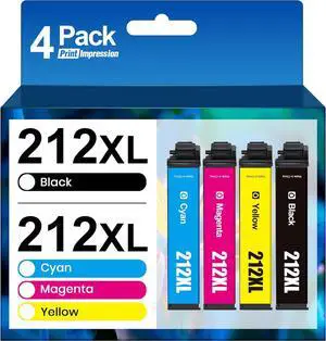 212XL Ink T212XL T212 High Capacity for Epson 212 Ink Cartridges Remanufactured for Epson 212XL Ink Cartridges Combo Pack for Workforce XP-4100 XP-4105 WF-2830 WF-2850 (Black, Cyan, Yellow, Magenta)