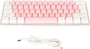Nutriess 60 Percent Wired Gaming Keyboard RGB Backlight 61 Keys Compact Ergonomic Design Pink White for s and Typists (White Pink)