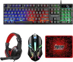 Housoutil Gaming Keyboard Mouse Pad Headset 3 Led Ergonomic Design Easy Installation for