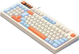 Fuhiueos Ergonomic Keyboard with ARGB Backlight 98Key Keyboard USB Line Compatible for Multiple Systems Comfortable Keycap