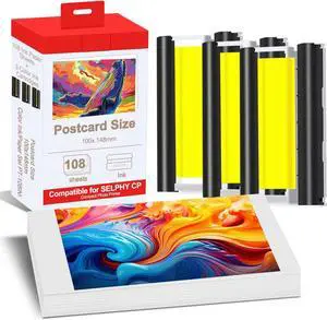 Compatible for Canon Selphy CP1300 Paper and Ink,KP-108IN 3 Color Ink Cassette and 108 Sheets 4 x 6 Glossy Paper for Selphy CP1500 CP1300 CP1200 CP1000 CP910 CP900 CP810 Printer