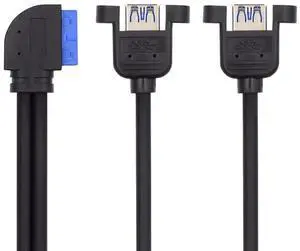 USB 3.0 Front Panel Header 2 Male to 2 USB 3.0 Female Panel Port Extension Cable 0.5M with Panel Mount Holes