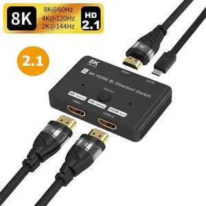 WISDUM 8K HDMI Switcher, 4K 120hz HDR Aluminum Bi-Directional Switch Splitter 2 in 1 Out or 1 in 2 Out, Support High Speed 48Gbps 8K@60Hz, for PS5, Xbox Series X , Apple TV, Samsung TV