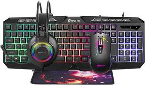 Xtrike Me 4-in-1 Gaming Combo Wired Keyboard 7D RGB Mouse with RGB Headset with Adapter Medium Mouse Pad for PC Mac Fortnite Call of Duty