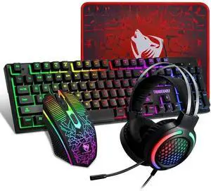 TF400 Gaming Keyboard & Mouse, Mouse Pad & Gaming Headset, Wired LED RGB Backlight Set for PC Gamers - 4 in 1 Gift Box Edition