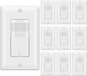 [10 Pack] BESTTEN Motion Sensor Light Switch, Single Pole PIR Sensor Wall Switch, Occupancy & Vacancy Modes, 120V/277VAC, 60Hz, 1/6HP, Neutral Wire Required, Wallplates Included, cUL Listed, White