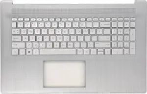 Replacement Upper Case Palmrest with Backlit Keyboard Assembly for HP 17.3'' Laptop 17 cn0023dx 17-cn0053cl 17-CN 17-CP 17T-CN 17Z-CP M50456-001 Natural Silver