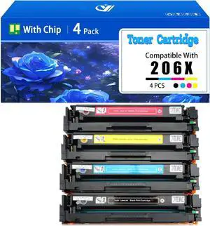 206X Toner Cartridges 4 Pack (with Chip) High Yield Replacement for HP 206X W2110X W2111X W2112X W2113X Toner Color Pro MFP M283fdw M255dw M283cdw M283 M255 M282 Printer (Black Cyan Yellow Magenta)