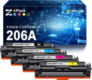 206A Toner Cartridge Compatible for HP W2110A W2111A W2112A W2113A Toner Cartridges Work for HP Laserjet Pro M255dw M255nw M282nw M283cdw M283fdn M283fdw Printers, with Chip, 4 Pack