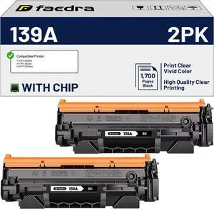 Faedra (with Chip) Compatible Toner Cartridge for HP 139A W1390A 139X W1390X BlackToner Replacement for HP LaserJet Pro 3002dn 3002dw 3002dwe MFP 3102fdw Toner, 2-Pack