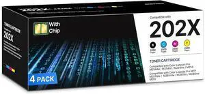 Updated Chip LCL Compatible for HP 202A 202X CF500A CF500X CF501X CF502X CF503X (4-Pack, Black Cyan Magenta Yellow) Toner Cartridge for HP Color LaserJet Pro M254 M254dn M254dw MFP M281 M281dw M281CDW