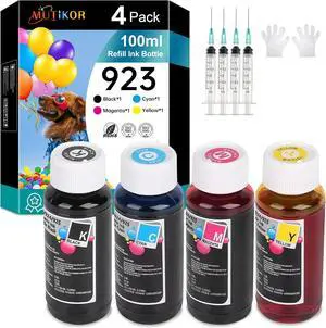 Competible 923 Ink Bottles Refill Replacement for HP 923 Ink Refill Competible for HP 8122e 8135e 8138e 8139e 8130 8120 8123 Printers (4-Pack, Black, Cyan, Magenta, Yellow)