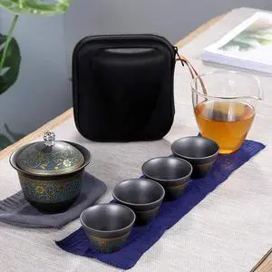 Ceramic Kettle Ceramic Teapot Set One Pot Four Cups Travel Tea Set Ding Kiln Convenient Kung Fu Ceramic Tea Set Matt Glaze Tea Tray Teapot 200Ml Six Sets, Pp (Uu)