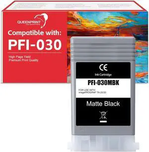 QUEENPRINT High speed printing PFI-030 Ink Cartridge Compatible PFI-030 MBK Ink Cartridge Replacement for Canon TA-20 TA-30 Printer (Matte Black) 1-Pack