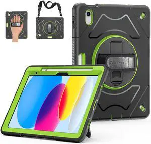Case for iPad 10th Generation 2022: iPad 10.9 Case Military Grade Heavy Duty Shockproof Cover for iPad 10.9 Inch 2022 Hand/Shoulder Strap - Rotating Stand - Green