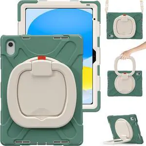 Case for iPad 10th Generation 2022 10.9 Inch Model A2696 A2757 A2777, Rugged Heavy Duty Shockproo cover with Pencil Holder/360 Degree Kickstand/Hand Grip/Shoulder Strap