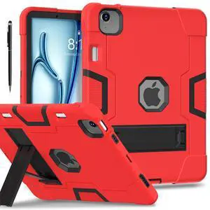 WERLEO Case for iPad Air 11 inch M3 2025 / iPad Air 11 M2 2024 with Pencil Holder Heavy Duty Rugged Protective Cover with Kickstand Stylus Pen Red