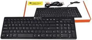 104 Keys Office Keyboard, German/French/Spanish/Italian/Arabic/Swedish/Russian/Portuguese Keyboard, USB Port, Ultra Slim and Quiet, Well Layout of Keys, Black, ES